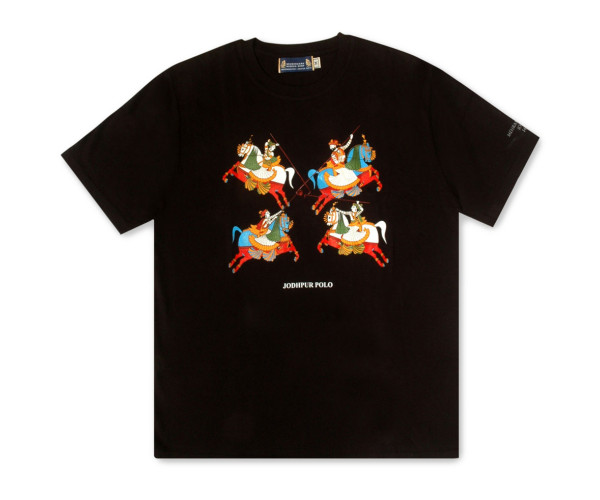 cotton, classic fit, machine washable. Black, with multi-color image.