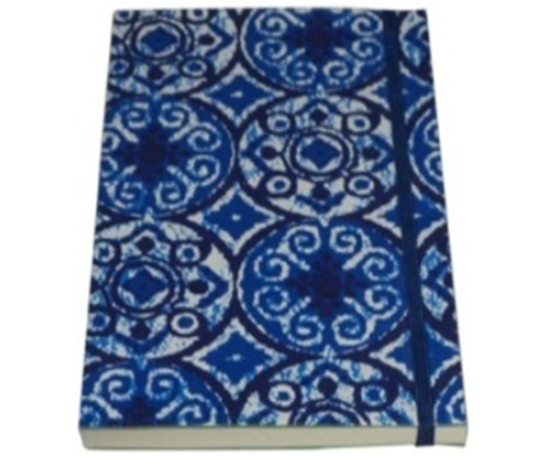 HAND MADE PAPER NOTEBOOK WITH BLUE PATTERN COVER.