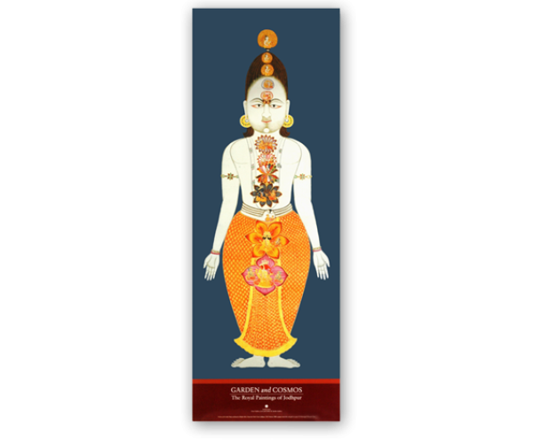 Poster from the Garden & Cosmos exhibition, depicting "Chakras of the Subtle Body", from Folio 2 of the Nath Charit, (c. 1823). Suitable for framing; shipped in mailing tube.