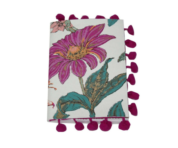Notebook flower design with pompom  Size 4"x 6"(10.1cm x15.2 cm)